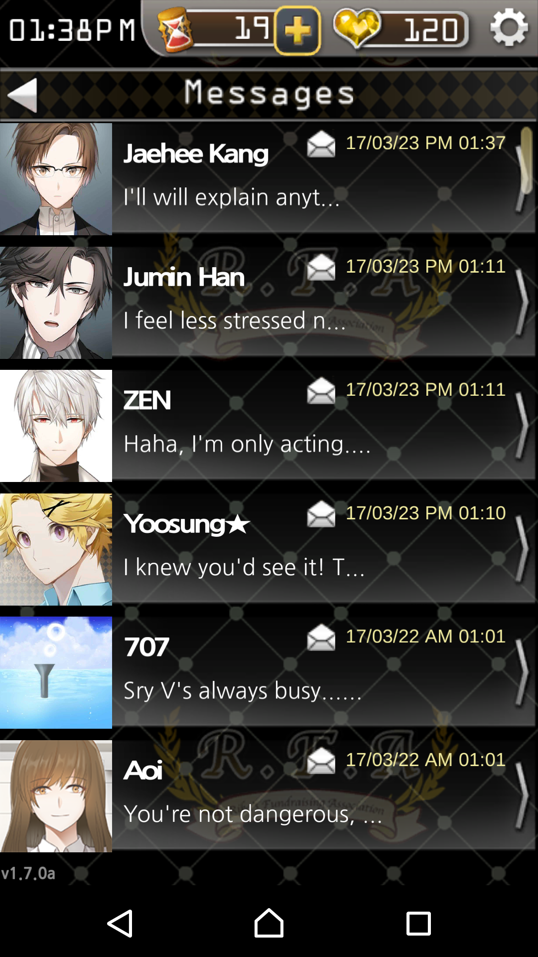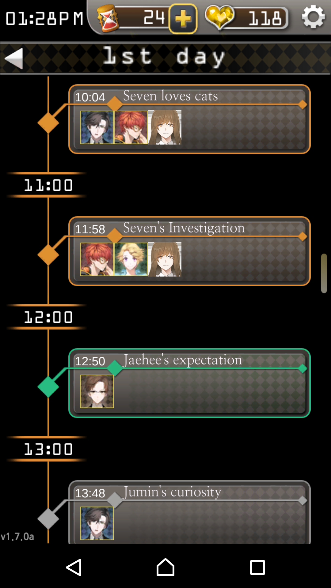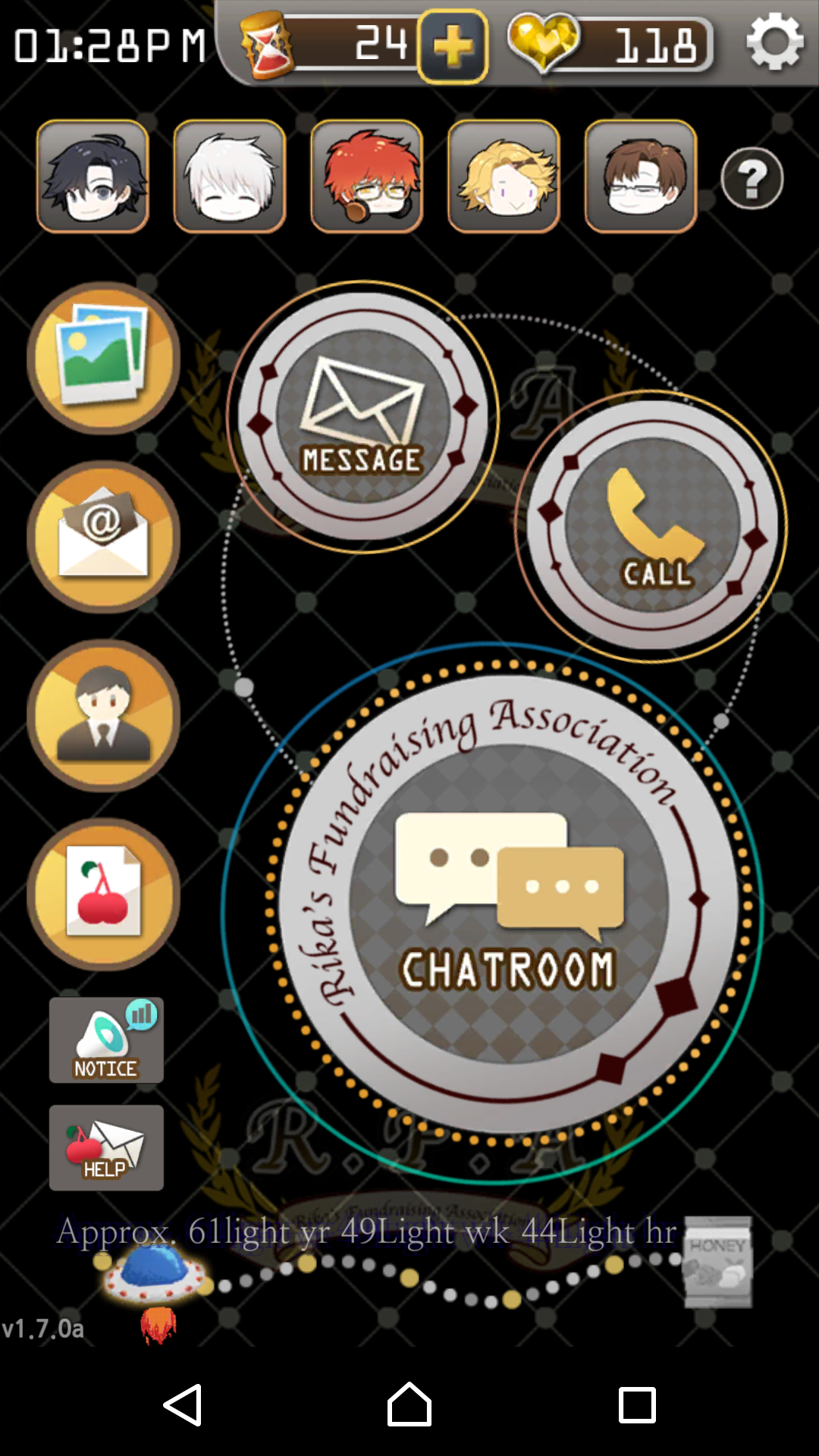 遊戲主要劇情由CHATROOM進行,但這款遊戲是會按照現實時間進行,一旦錯過某個時間的訊息,就只能乖乖交出愛心(可免費取得的付費道具),不然就只能看到某某角色在聊天室裡自嗨或跟別人聊天。
