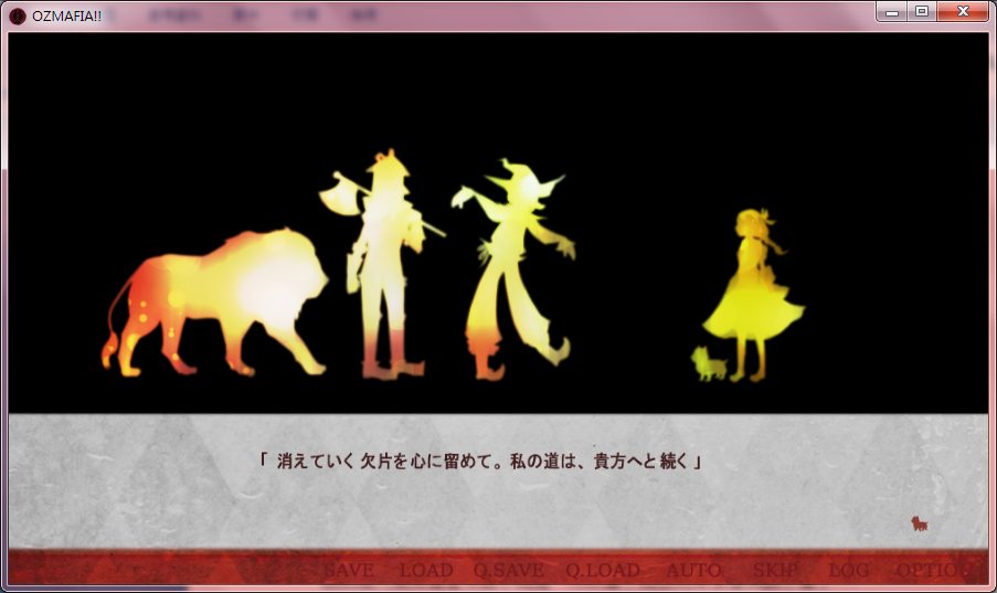 遊戲開始先是女主角似乎在逃命的狀態,接著突然轉而簡短講述綠野仙蹤的大綱。當然,這和我們遊戲的主角們息息相關……大概。