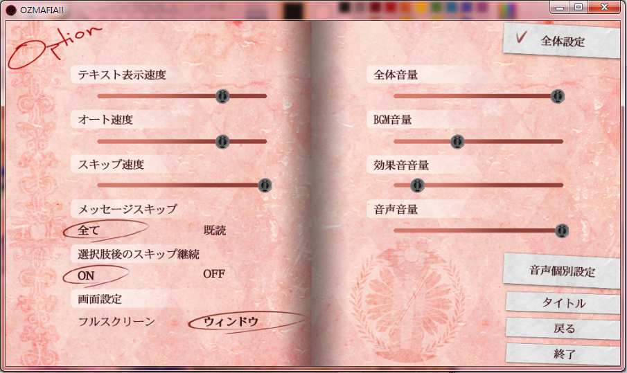 忘記給大家看的遊戲設定畫面。
